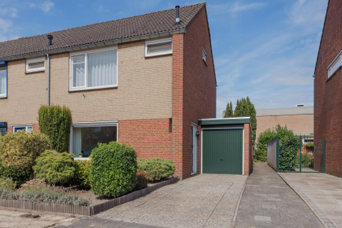 De garage is vanuit de tuin te bereiken middels 2 loopdeuren. Deze ideale ruimte kan perfect dienen als klusruimte of voor de opslag van spullen en fietsen. Er is stroom en water aanwezig.
